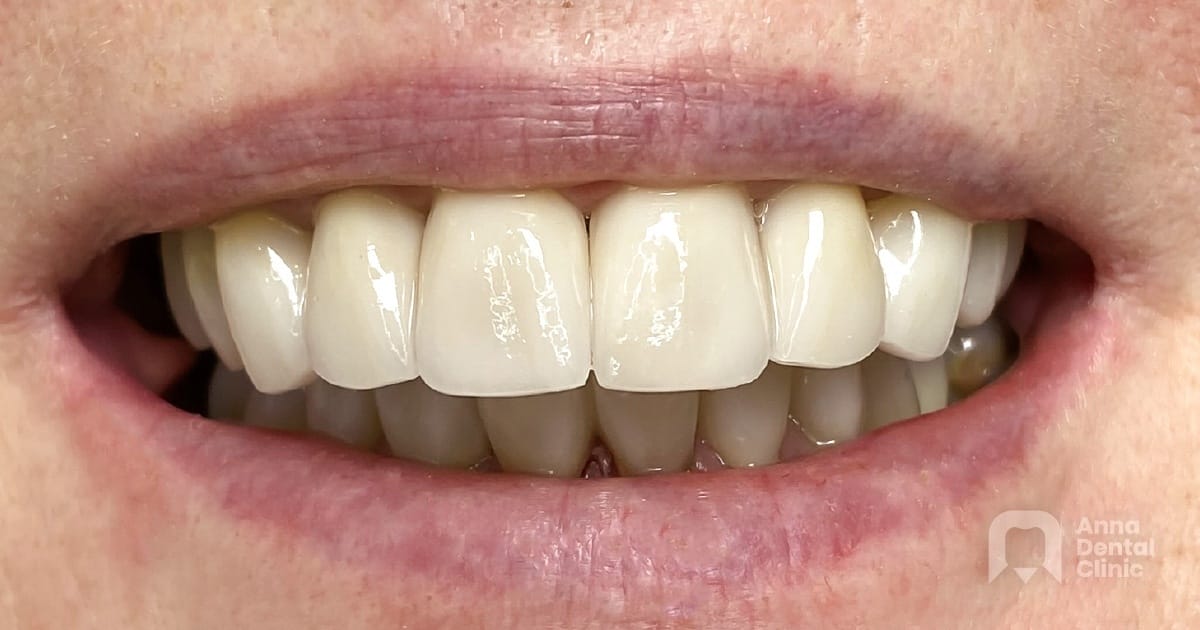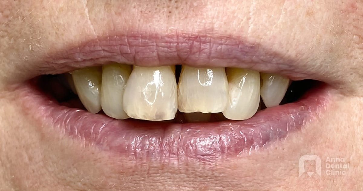 Do naszej kliniki zgłosiła się pani Brygida z pytaniem "czy z jej uśmiechem po przebytej paradontozie da się coś jeszcze zrobić". Dla lek. dent. Anny mając ogromne doświadczenie takie wyzwanie to sama przyjemność a przywracanie zdrowych i pięknych uśmiechów swoim pacjentom to jej pasja zawodowa. Efekt naturalnych zębów to kształt i kolor dopasowany do twarzy i charakteru pacjenta to również nieregularne kształty w regularnej kompozycji.