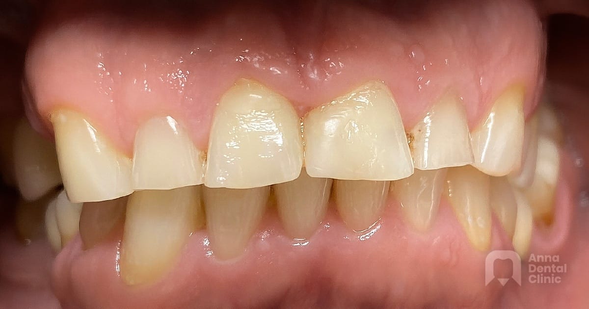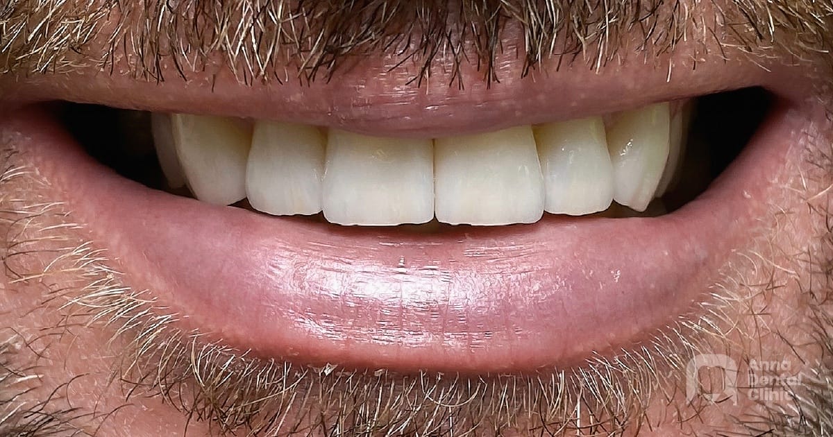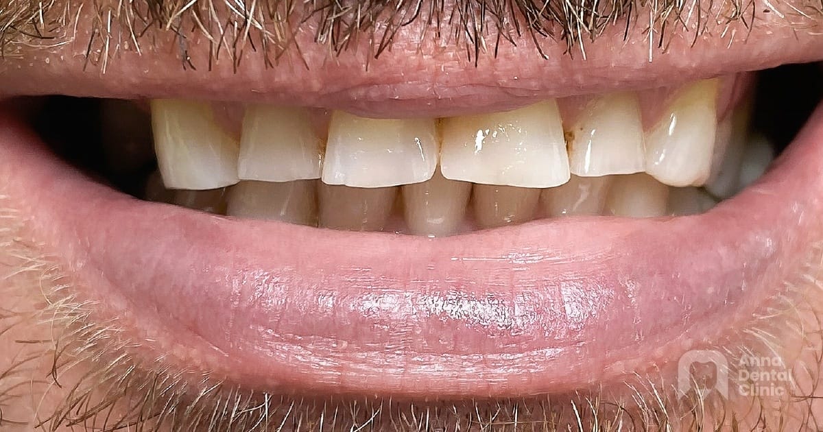 Kolejna metamorfoza lek. dent. Anny Sarzyńskiej i Pracowni Protetycznej Anity Walerzak. Zespół pod kierownictwem lek. dent. Anny zastosował kompleksową odbudowę górnego łuku zębowego przy użyciu licówek porcelanowych. Przywracając utraconą na skutek starcia długość zębów, zachowano naturalny efekt według życzenia naszego pacjenta. Efekt naturalnych zębów Zęby własne nie mają idealnych równych brzegów oraz śnieżnobiałego koloru. Można powiedzieć, że każdy ząb jest inny.